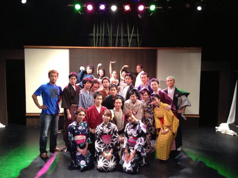(写真は「松陰の夢」の出演者たちと 左端が内田で右端の黄色い着物が山崎さん)